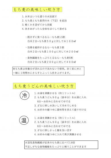 もち性の強い裸麦で、高β−グルカン(水溶性食物繊維)がたっぷり含まれています。